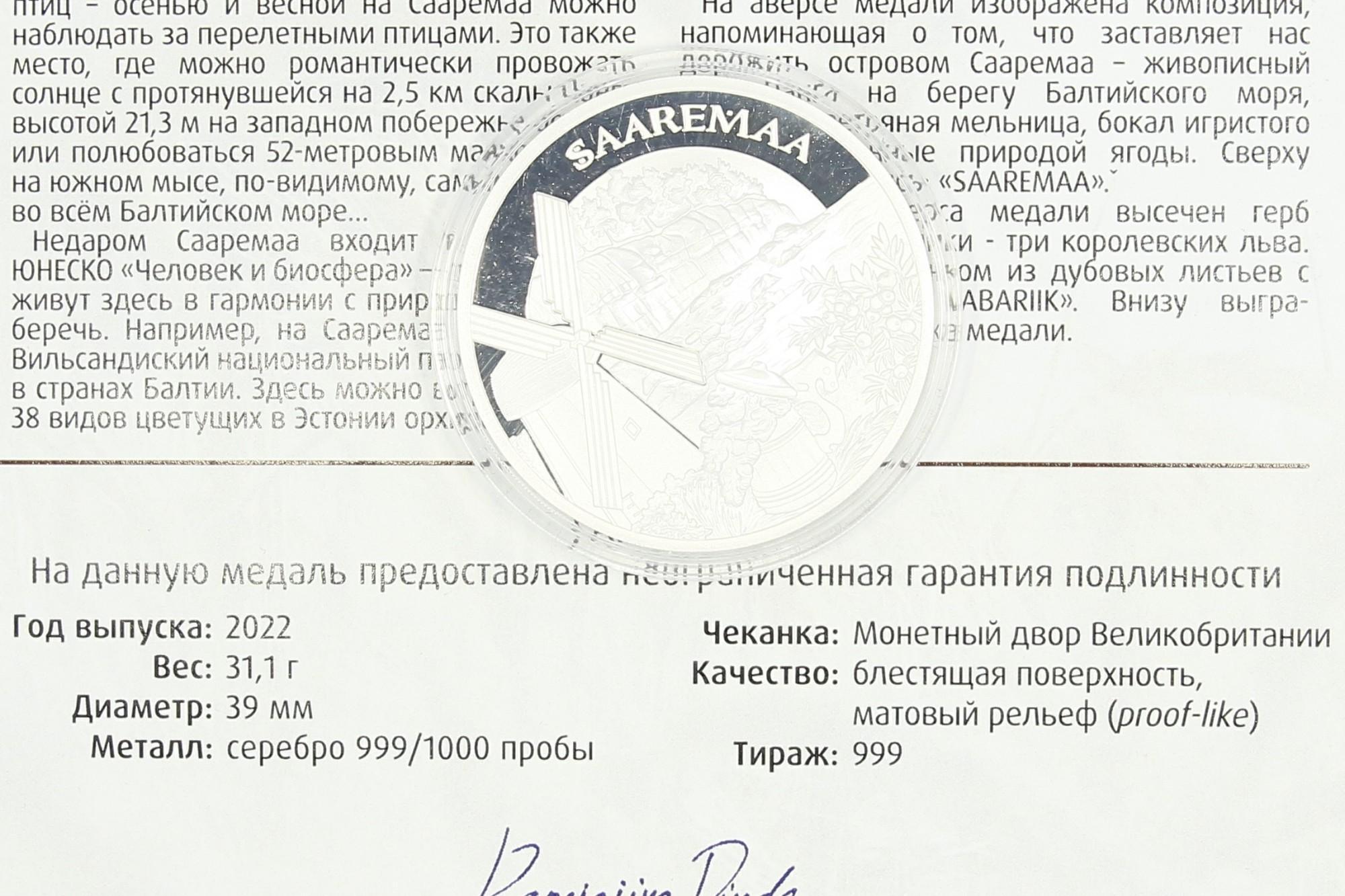 Hõbemünt 999* Saaremaa 2022a Hõbemünt 999* Saaremaa 2022aHõbemünt 999* Saaremaa 2022a