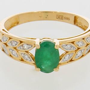 Kuldsõrmus 585* Smaragd 0.75ct + Briljant 0.11ct