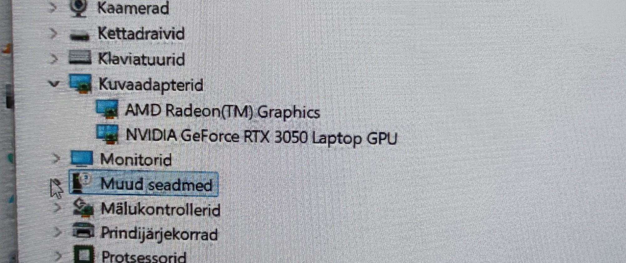 | Graafikakaart | NVIDIA GeForce RTX3050 Laptop GPU |