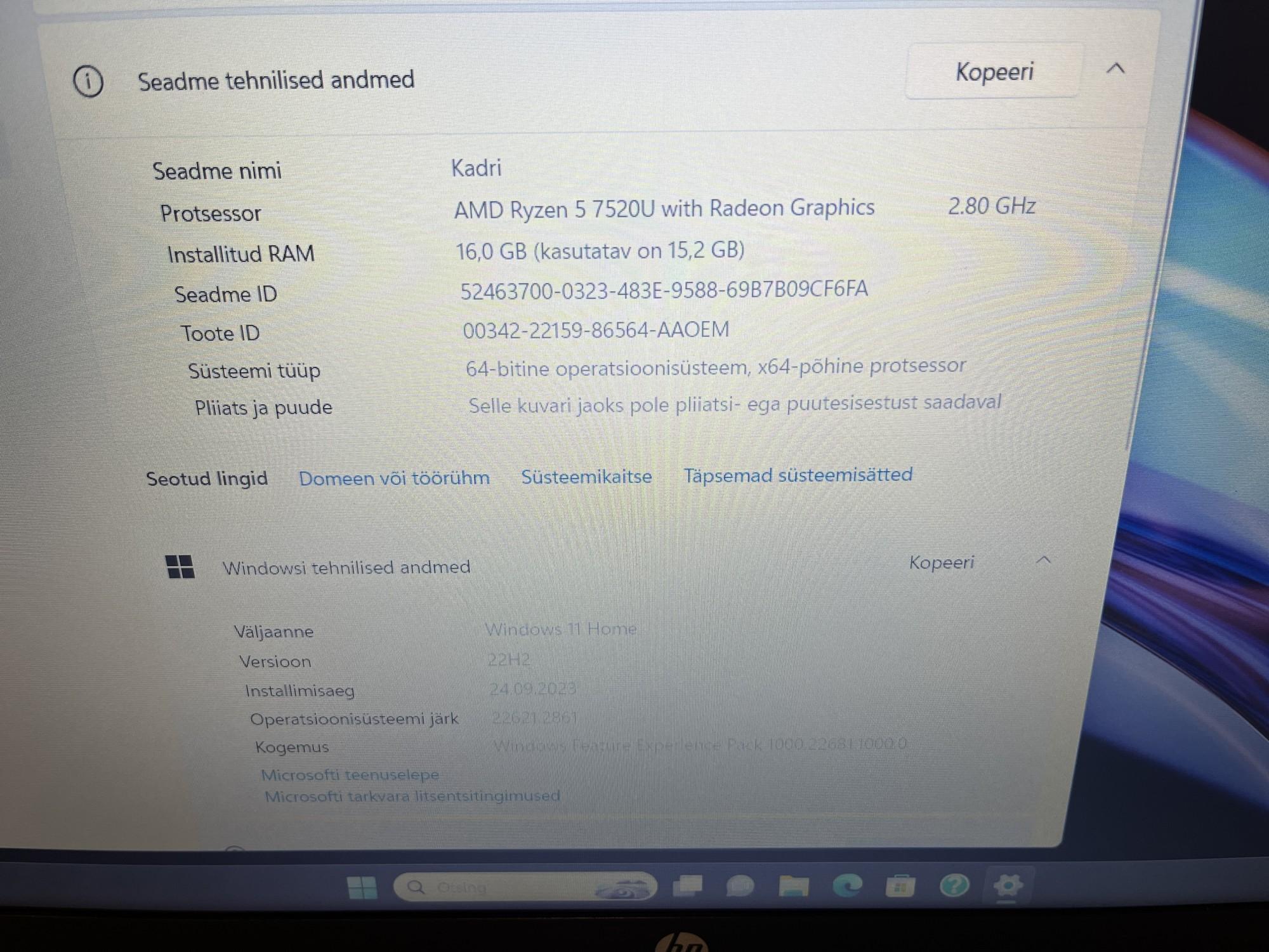 | Graafikakaart | AMD Radeon (TM) Graphics |