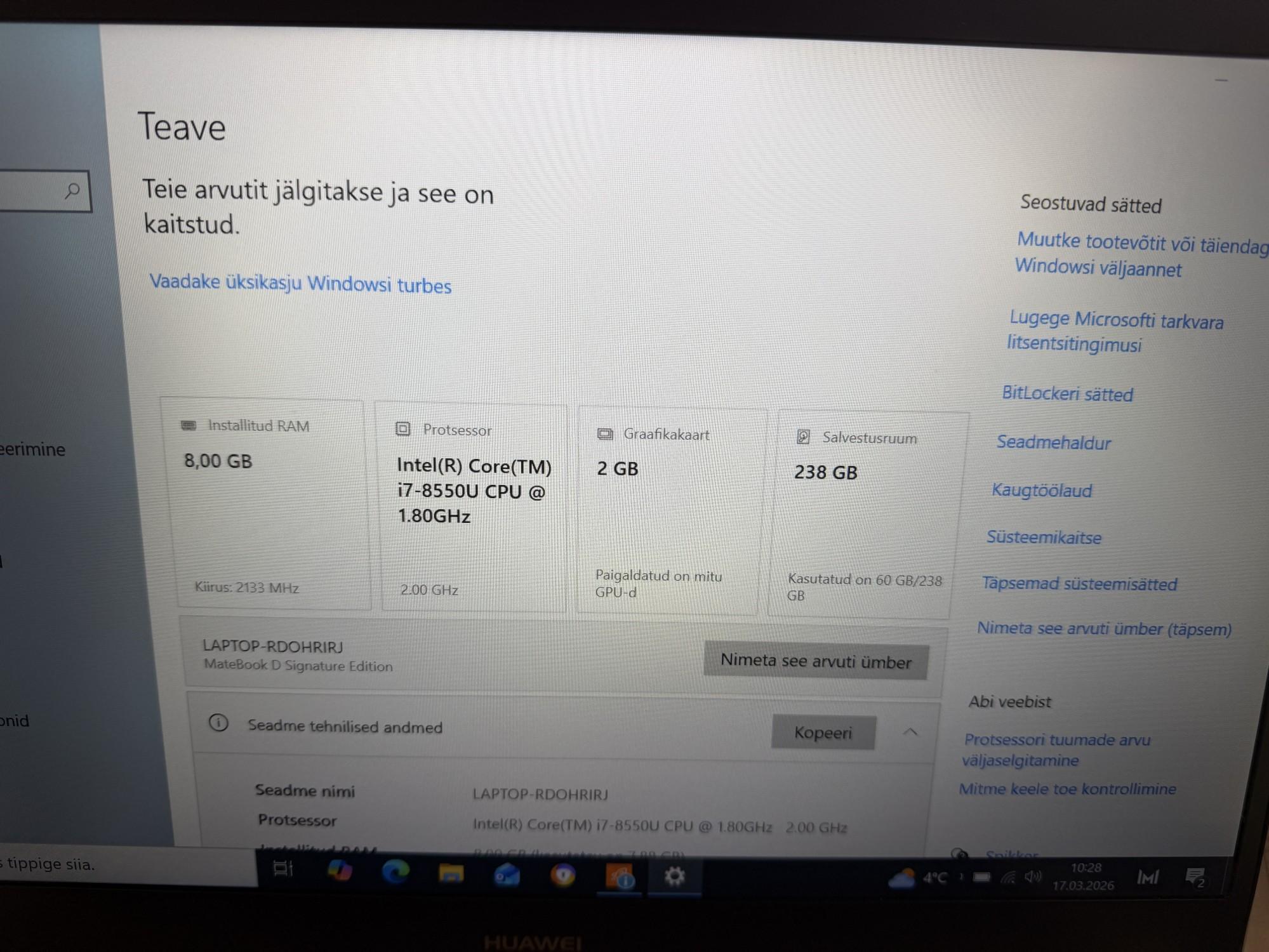 | Kõvaketas | 256 GB |