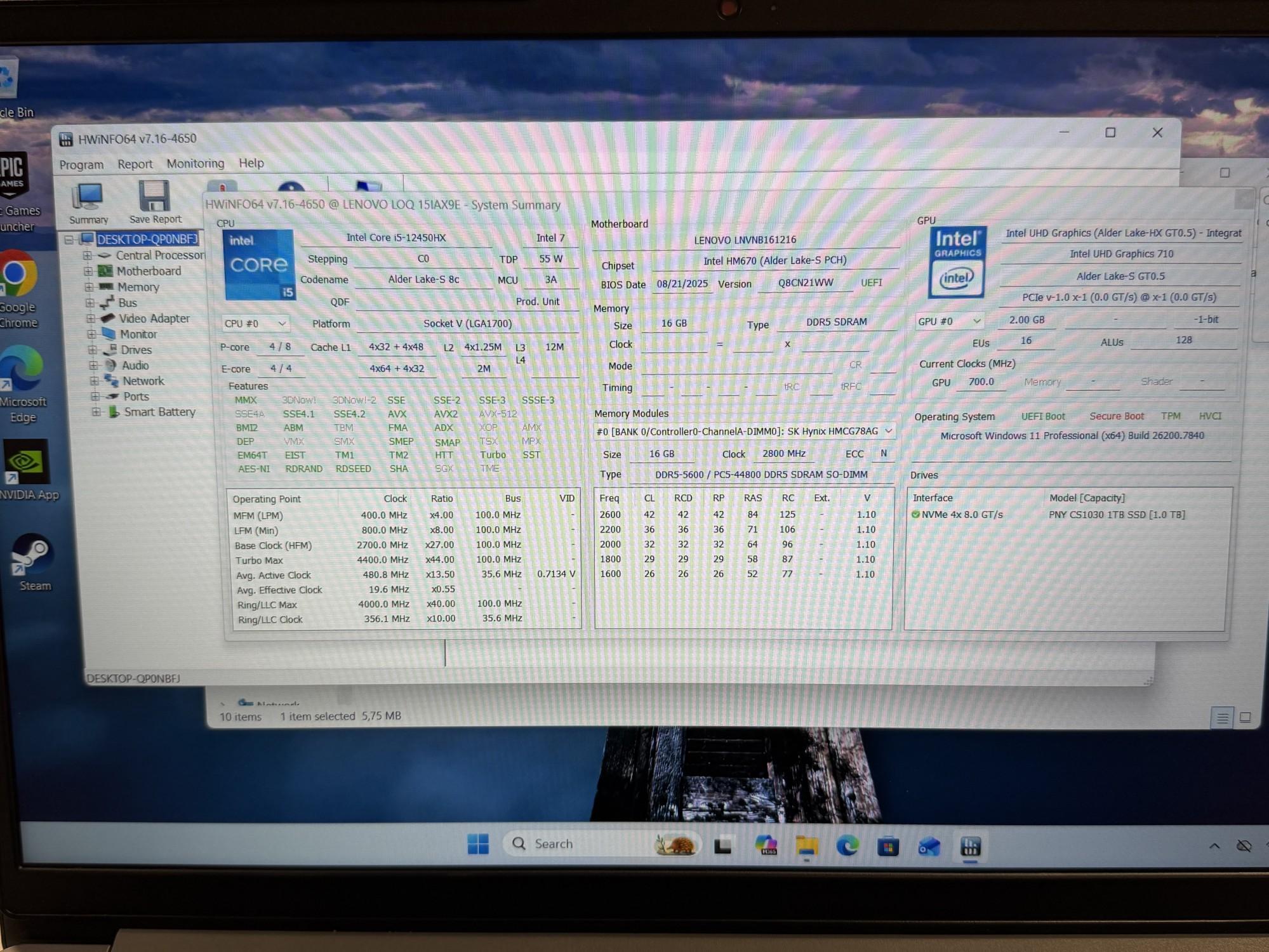 | Protsessor | Intel Core i5-12450HX |